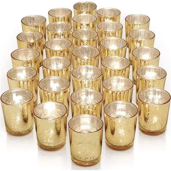 Gold Mercury Glass Votives. Rental includes small tea light candle.