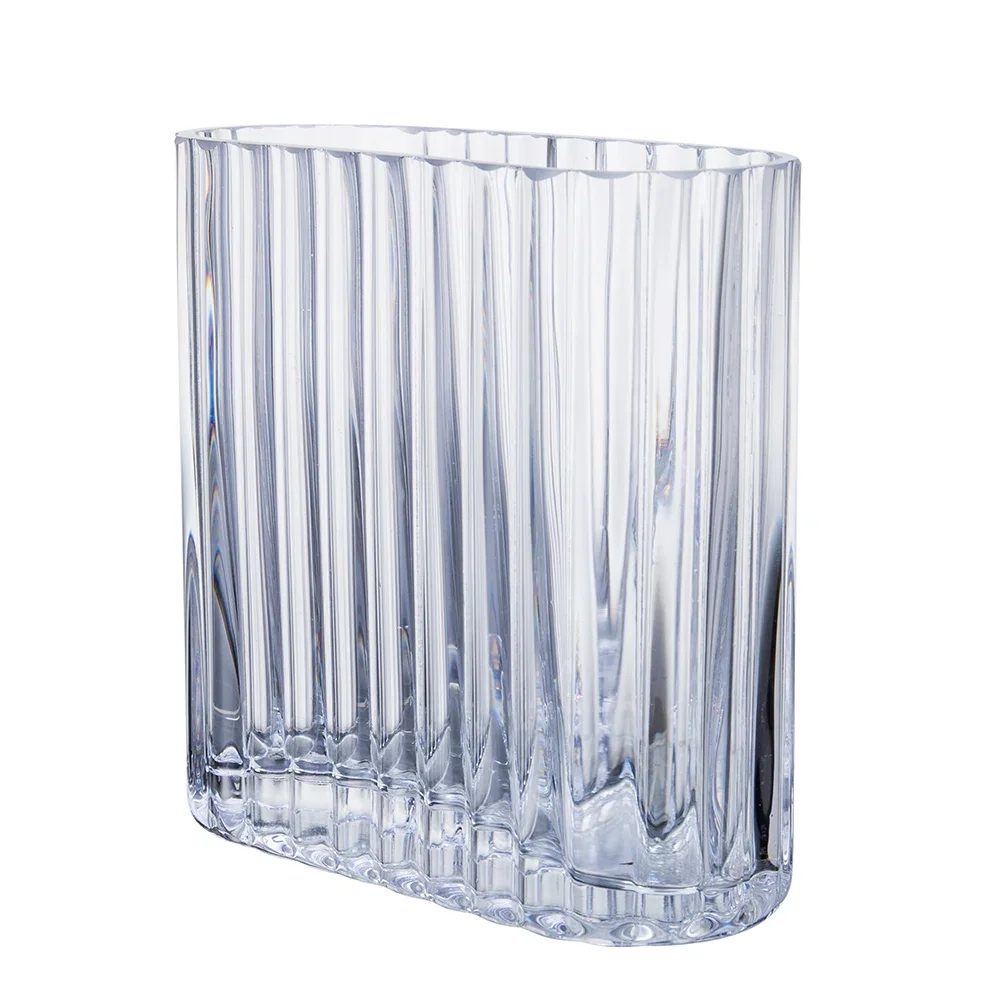 Tall, ribbed, long glass vases that can be used for floral centerpieces, altar flowers, a guest book arrangement, or bar flowers.